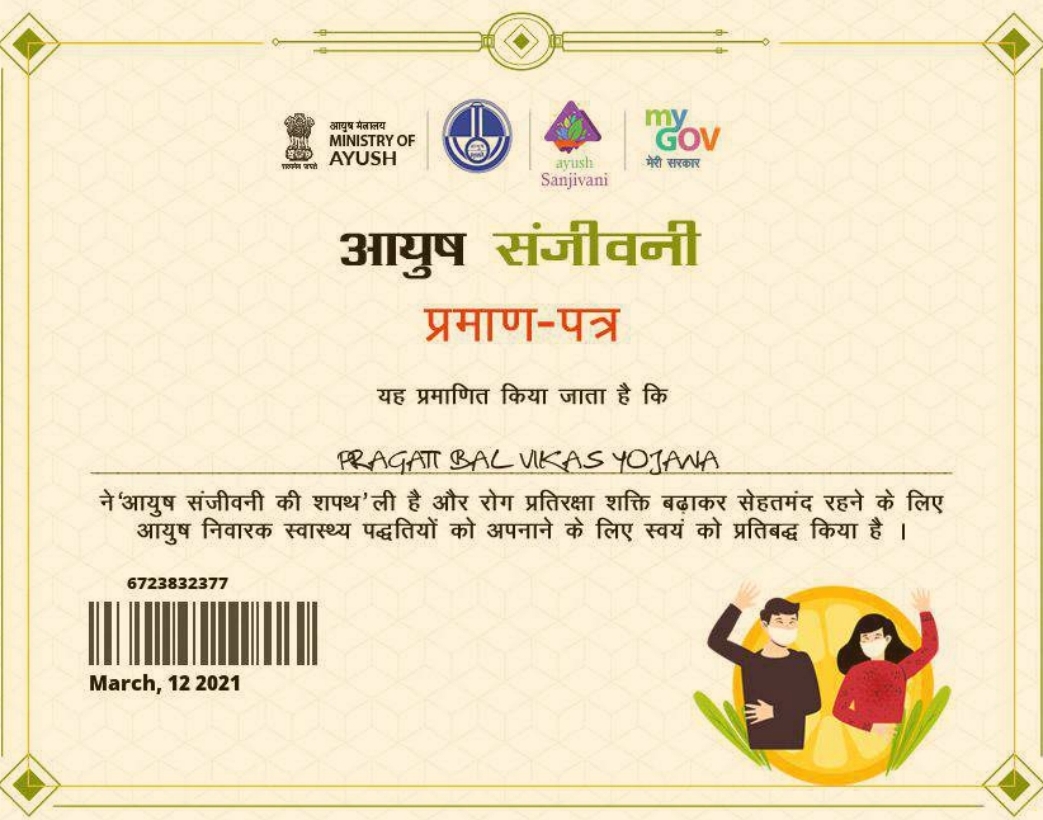 आयुष संजीवनी प्रमाण पत्र