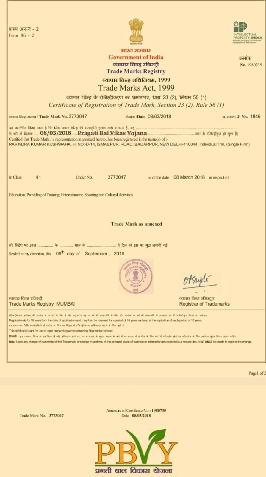 TRADE MARK PBVY
