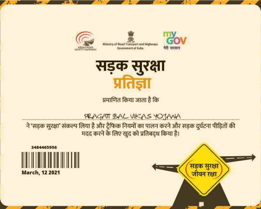 सड़क सुरक्षा प्रतिज्ञा पत्र