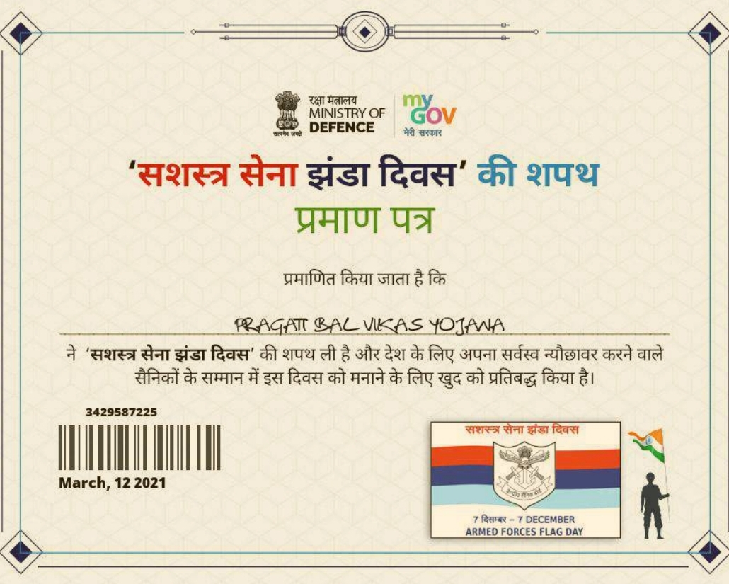 झंडा दिवस की शपथ प्रमाण पत्र