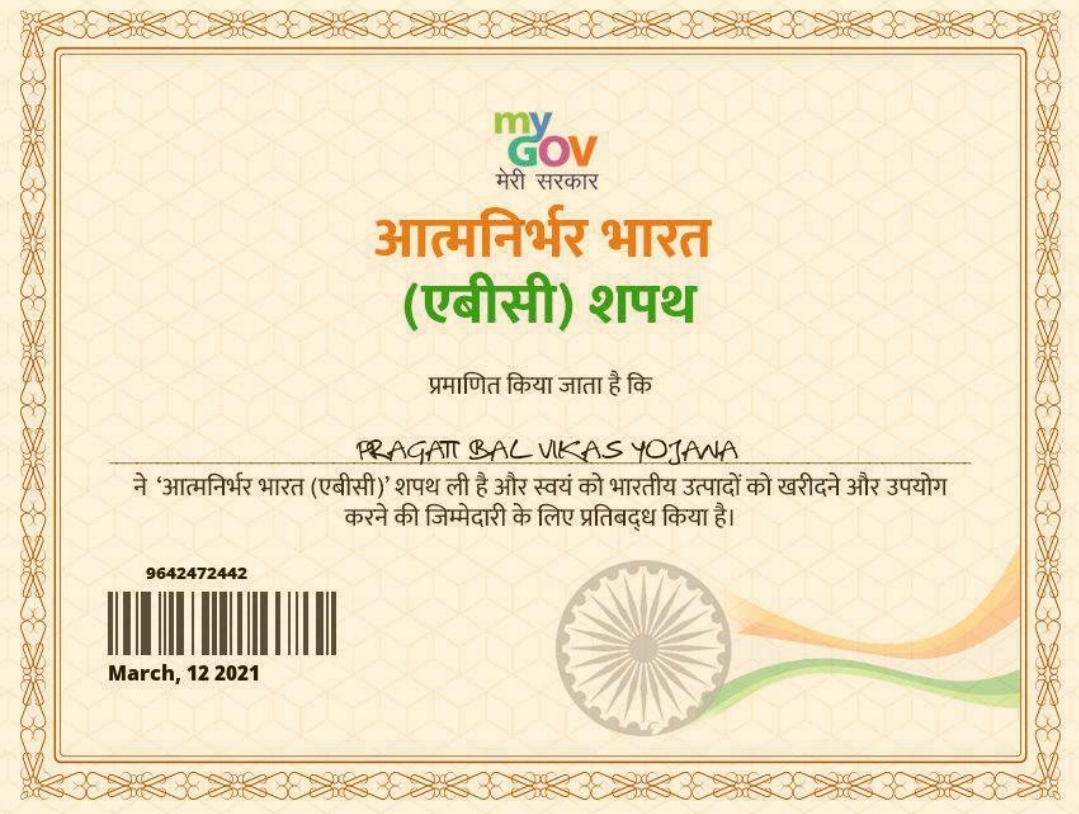 आत्मनिर्भर भारत शपथ प्रमाण पत्र