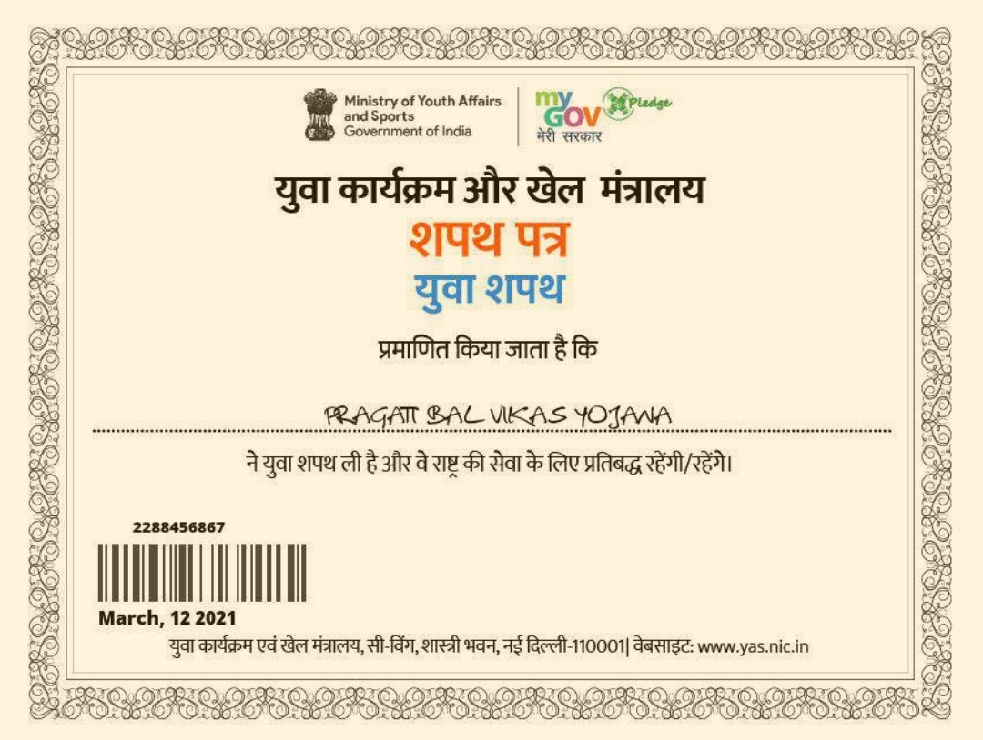 युवा खेल मंत्रालय शपथ प्रमाण पत्र