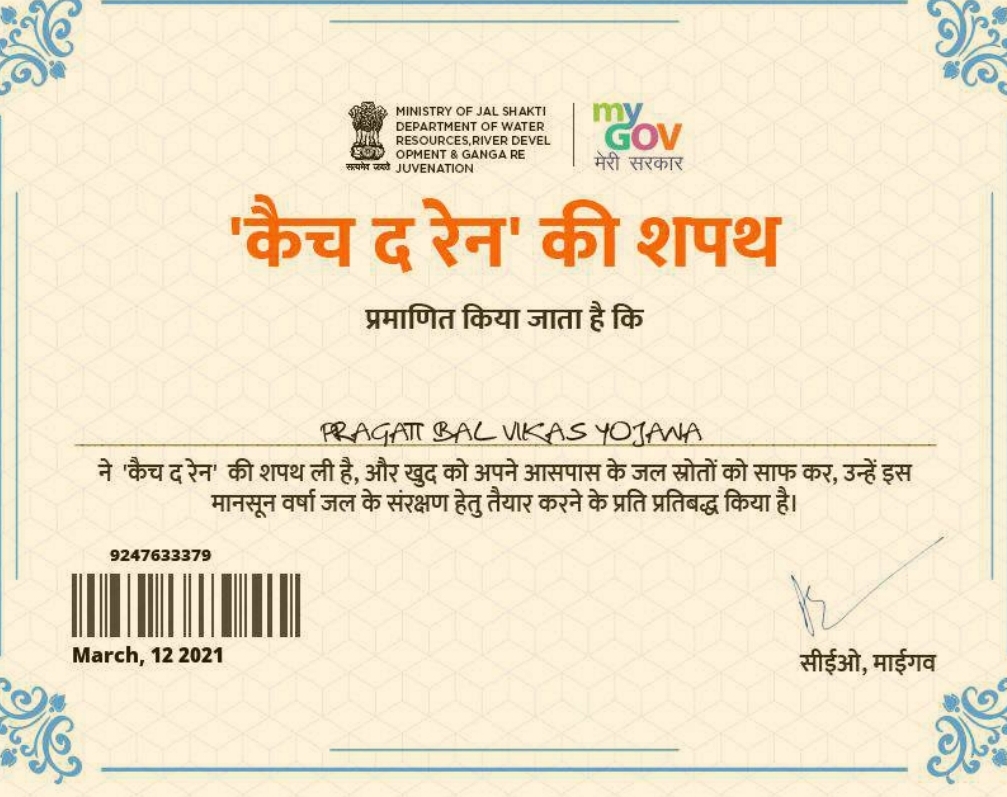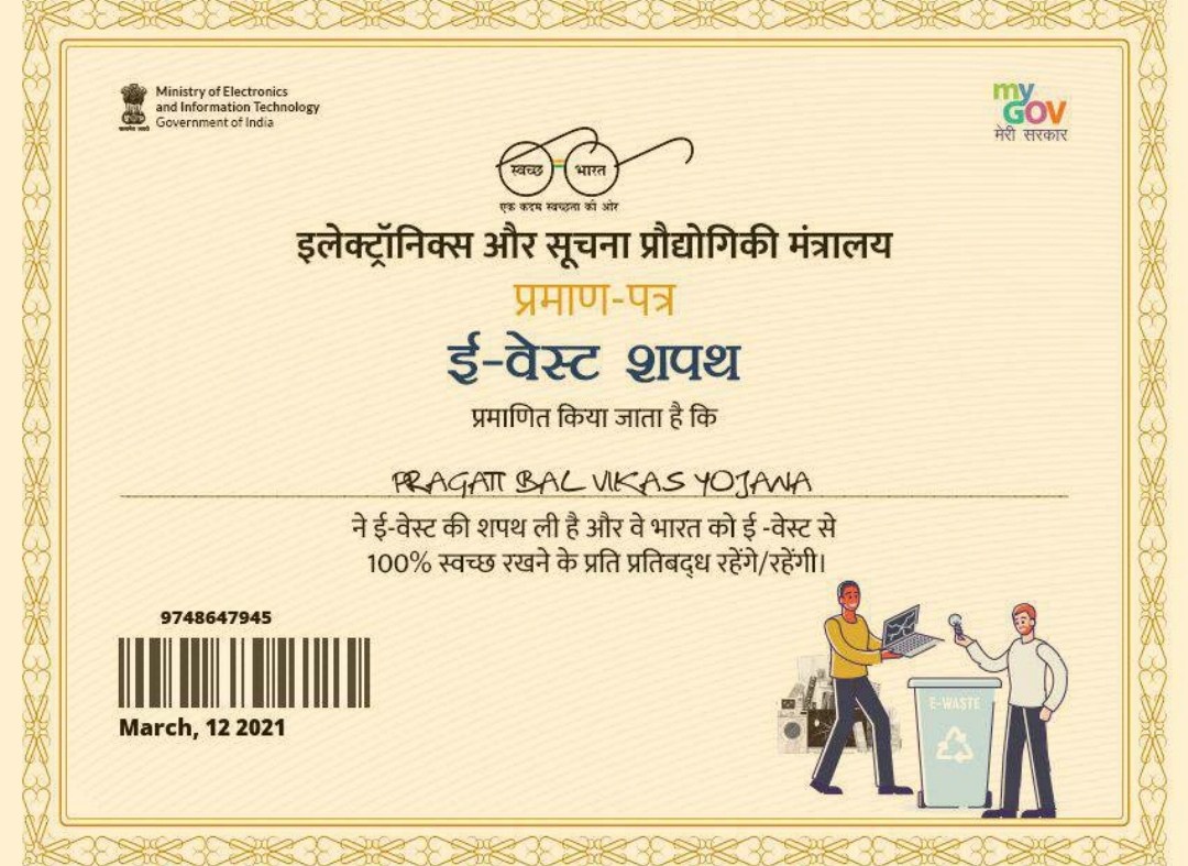 स्वच्छ भारत की शपथ प्रमाण पत्र