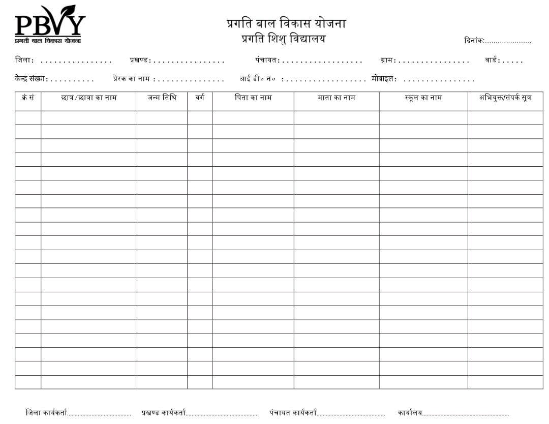 शिशु विद्यालय नामांकन फॉर्मेट