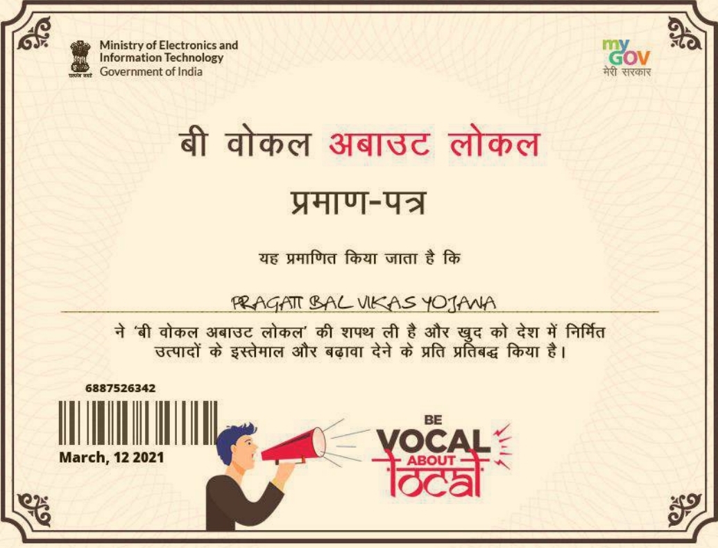 बी वोकल अबाउट लोकल प्रमाण पत्र