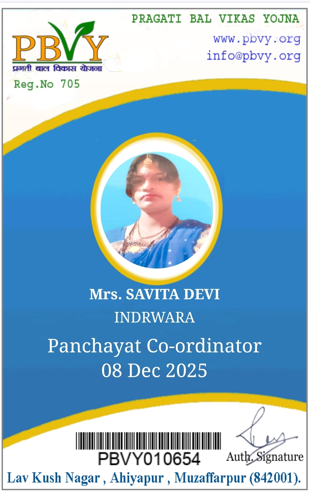 प्रगति बाल विकास योजना सादर निमंत्रण, हमें आपको सूचित करते हुए अत्यंत हर्ष हो रहा है कि संस्था द्वारा "कार्यकर्ता सम्मेलन सह सम्मान समारोह 2026" का भव्य आयोजन किया जा रहा है। इस गौरवशाली अवसर पर मुख्य अतिथि के रूप में माननीया अश्वमेध देवी जी (विधायिका, समस्तीपुर) उपस्थित रहेंगी और कार्यकर्ताओं का मार्गदर्शन करेंगी। कार्यक्रम के मुख्य आकर्षण: अतिथियों का सम्मान एवं प्रेरक संबोधन कार्यकर्ताओं एवं बच्चों हेतु सम्मान समारोह (टैबलेट, मेडल व पुरस्कार वितरण) मनमोहक सांस्कृतिक नृत्य एवं नुक्कड़ नाटक आपकी गरिमामयी उपस्थिति हमारे कार्यकर्ताओं का उत्साहवर्धन करेगी। कार्यक्रम के उपरांत सामूहिक प्रीतिभोज में आपकी उपस्थिति प्रार्थनीय है। दिनांक: 25 जनवरी 2026 स्थान: मुजफ्फरपुर, बिहार विनीत: रविंद्र कुमार कुशवाहा (सचिव) एवं समस्त प्रगति बाल विकास योजना परिवार।
