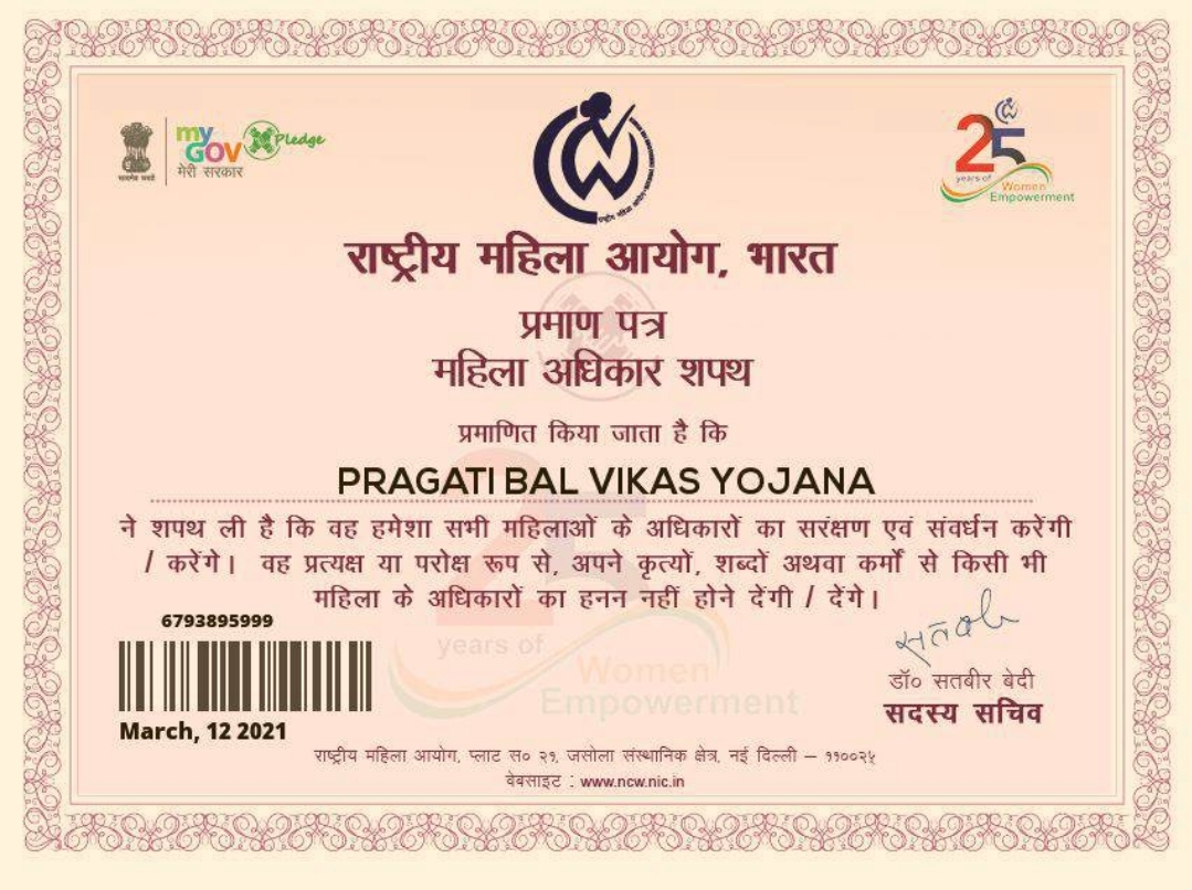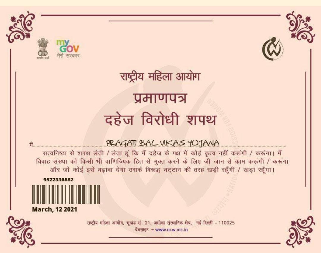 राष्ट्रीय महिला आयोग भारत प्रमाण पत्र