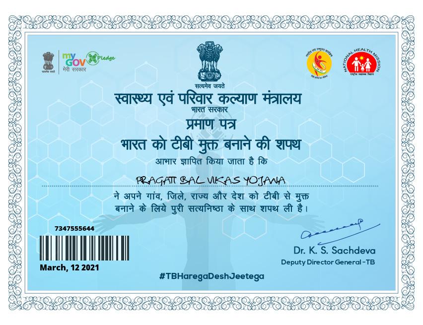 स्वास्थ्य एवं परिवार कल्याण मंत्रालय प्रमाण पत्र