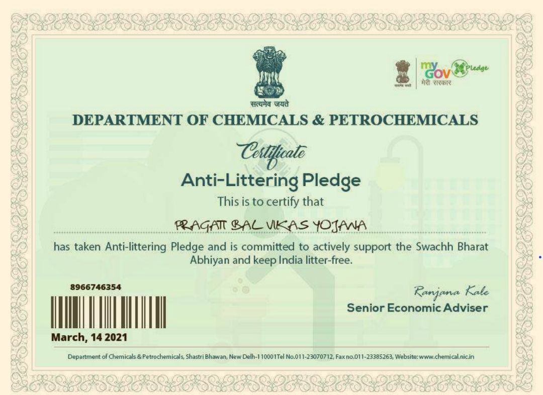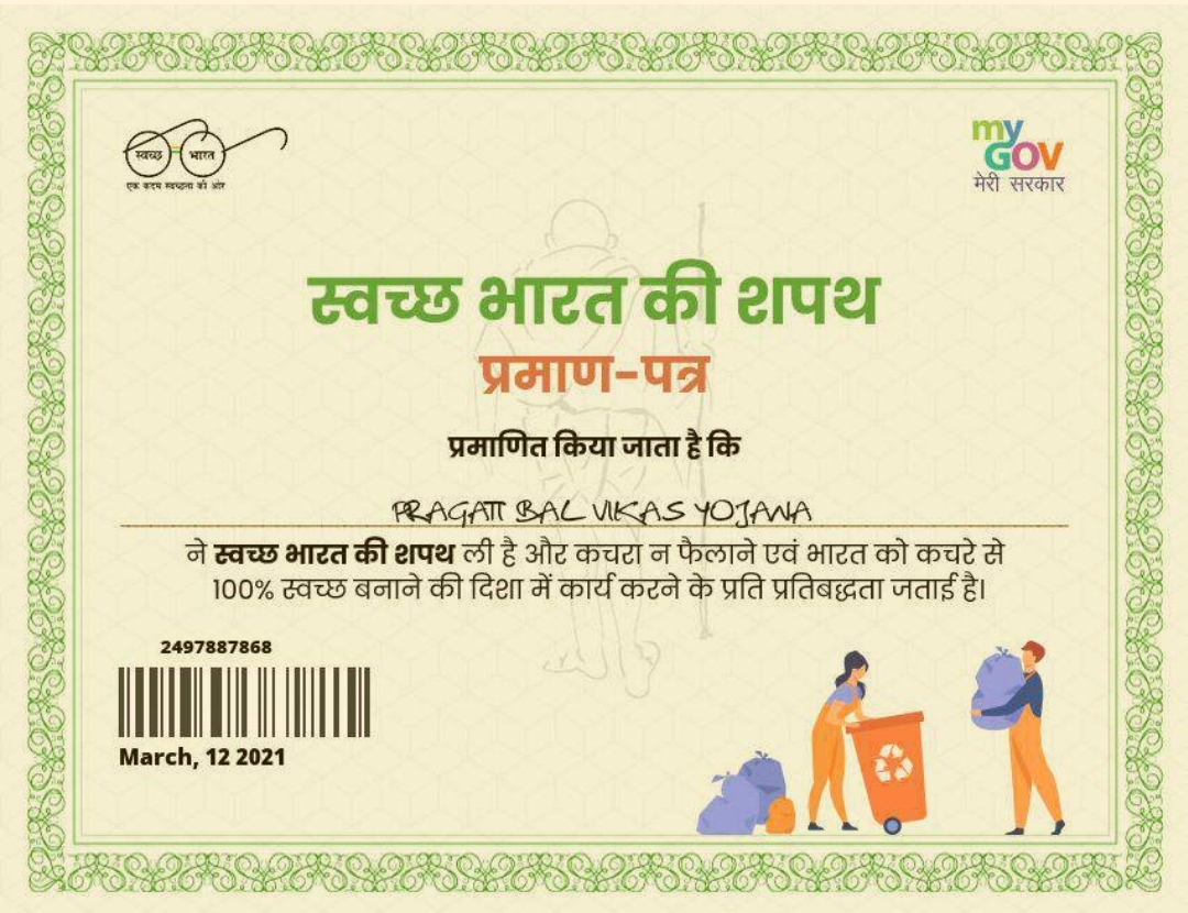 स्वच्छ भारत की शपथ प्रमाण पत्र