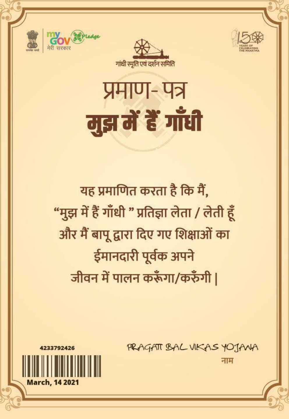 मुझ में है गांधी प्रमाण पत्र
