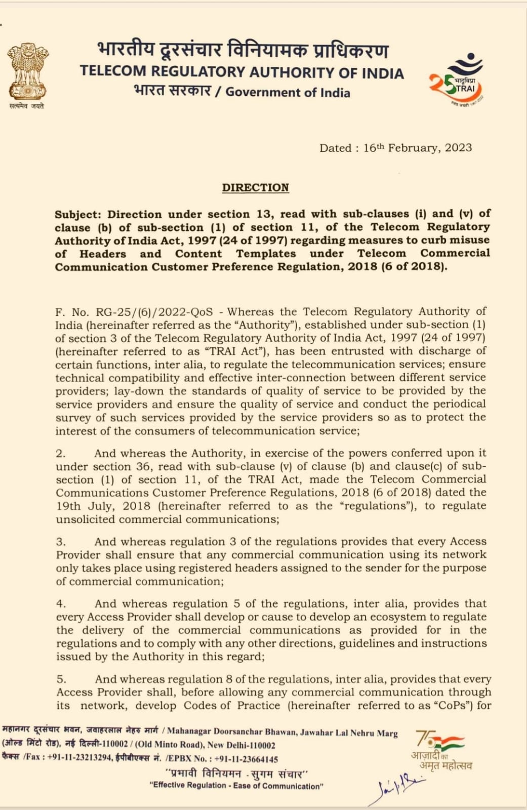 संचार विभाग ऑथराइजेशन लेटर